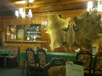 Ein gar kuscheliges Zimmer wurde uns zur Nutzung überlassen, so geräumig wie ein Zweimannzelt und mit abmontierten aber voll geöffneten Heizungsthermostaten. Es müssen so um die 30° Celsius bei 5% Luftfeuchte gewesen sein. Doch gegen den Durst gab ein hübsches Gaststüblein dessen Wandgestaltung vom üppigen Wildtierbestand der Region und deren Dezimierung zeugte. Als einzige Gäste wurde uns jeder Wunsch von den Lippen gelesen und der Füllstand der Gläser stets hoch gehalten.