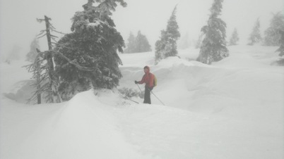 Der Winter hatte hier mit fast 2m Schnee noch klar die Oberhand. Das Wetter war zwar grau doch mit 5cm Neuschnee und guter Sicht