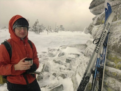 Grenzwertig und steile Anstiege mussten getragen werden. Erst nach dem langen Kampf im Wind zur Wosecka Bouda und so um die 900m wurde der Schnee langsam so weich das entspanntes Abfahren möglich war.